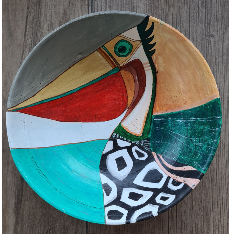 Veelkleurige papier maché schaal, doorsnede 30 cm